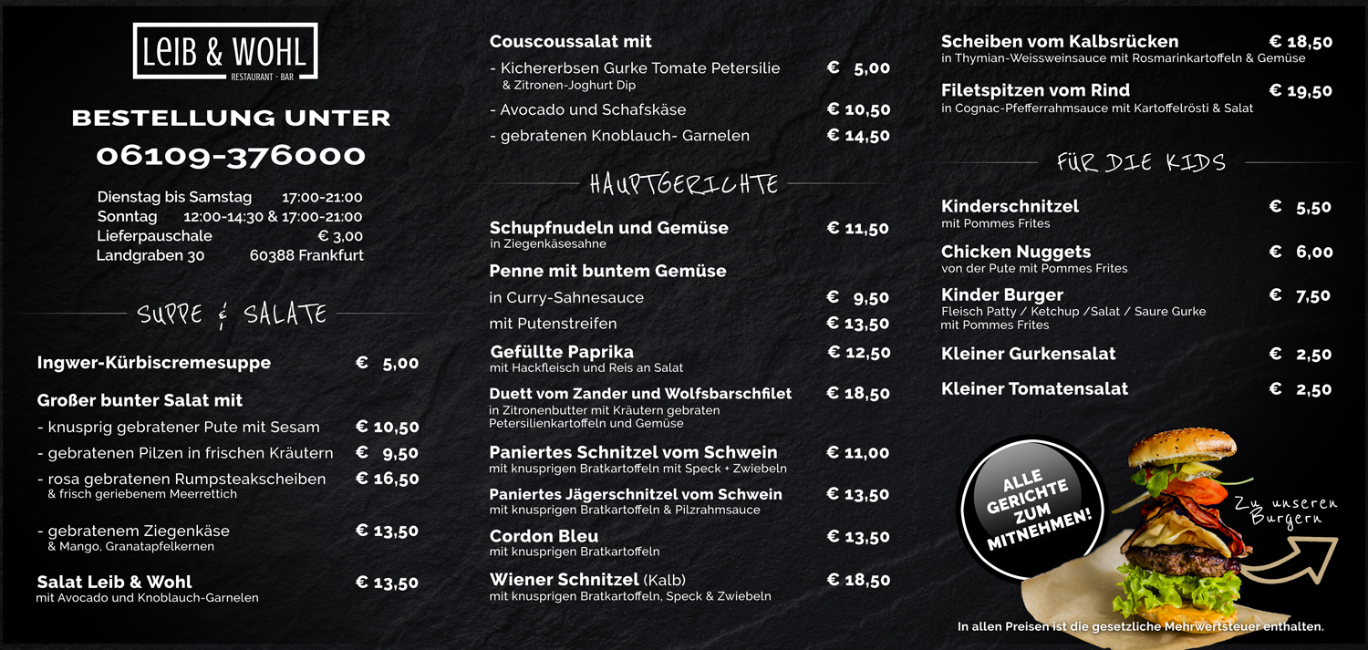 | Leib & Wohl Burger | € 14.50 |